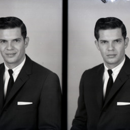 Photo of two separate portrait photographs of Gordon R. Rutz wearing a suit and tie.