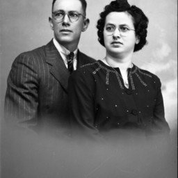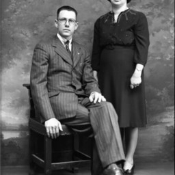 Photograph of Lester W. Ryman, seated, with his wife, Reba L. (Hottle) Ryman, standing beside him.