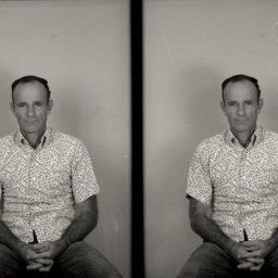 Photo of two separate photographs of Ernest Calvin Ryman seated with his hands clasped in front of him.