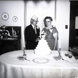 Luther is wearing a boutonniere and Mamie is wearing a corsage.