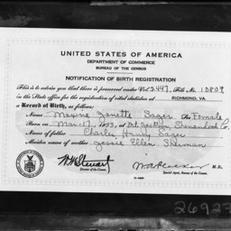 Maxine Janette Sager's Birth Registration
