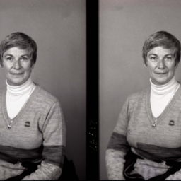 Photo of two separate portrait photographs of Joanna B. (Gardner) Shaffer of Woodstock.