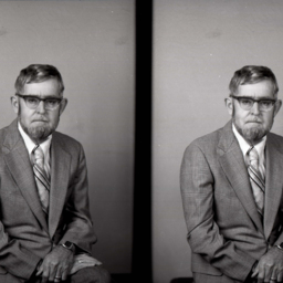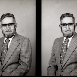 Portrait photograph of John David Shaffer wearing a plaid suit and striped tie.