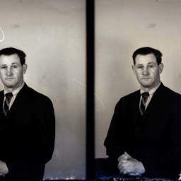 Photo of two separate portrait photographs of Marvin Garnet Sigler in a suit and tie.