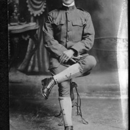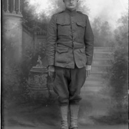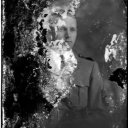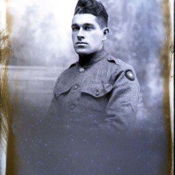 Photo of two separate portrait photographs of Loraine Grant Polk as a young man in his U.S. Army uniform.