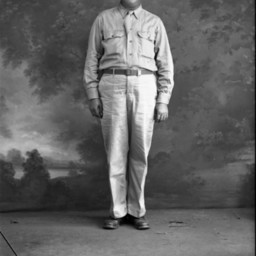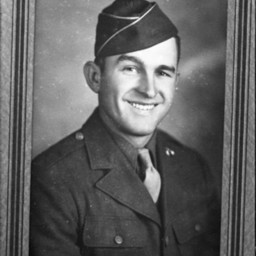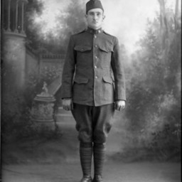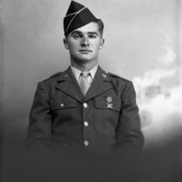 Photo of two separate portrait photographs of the same unidentified young man wearing a U.S. Army uniform.