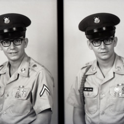 Photo of two separate portrait photographs of Gary Joe Wakeman in his U.S. Army uniform.