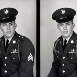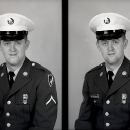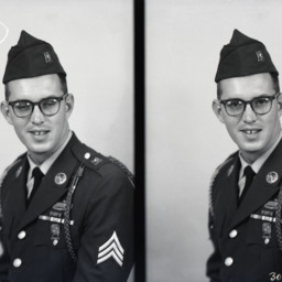 Photo of two separate portrait photographs of Wayne Tisinger in his U.S. Army uniform.