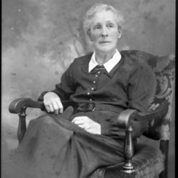 Photograph of Minerva Frances (Wolverton) Stultz seated on a chair in her later years.