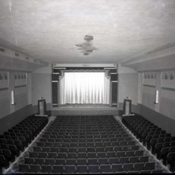 The building was constructed in 1940 by the Dalke family. This photograph was taken shortly after it opened. The theater marquee advertises the movie “Huckleberry Finn” starring…