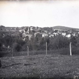 The image looks north from the approximate location of St. Peters Lutheran Church. Visible is the Bank of Toms Brook building, today the Post Office.