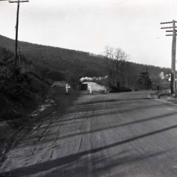 Photograph showing passengers disembarking from a train (locomotive 766) at the Shenandoah Caverns Flag Station.