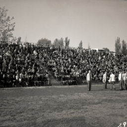 Most of the cast is unidentified, however, teacher and coach, Leroy E. Glunt, appears in the back row, third from the right.