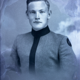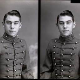 Photo of two portrait photographs of an unidentified cadet from Massanutten Military Academy (MMA) in his school's uniform.