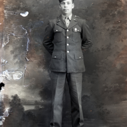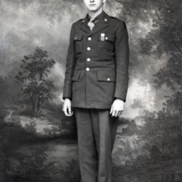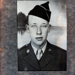 On the left is a portrait photograph of an unidentified young man in a U.S. Army uniform.