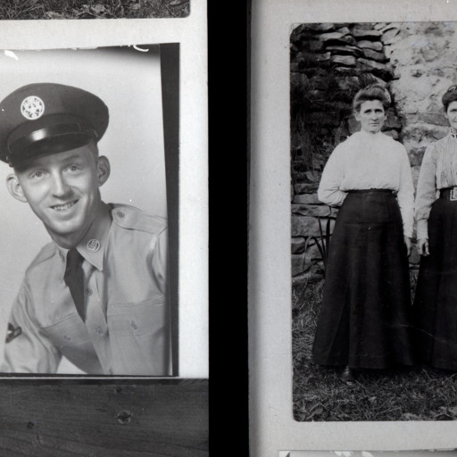 On the right is a photograph of two unidentified woman standing together outdoors with a…