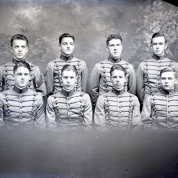The unidentified cadet in center front is holding…