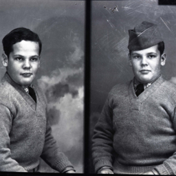 Photo of two separate portrait photographs of William "Billy" Bland Allen, III, as a cadet at Massanutten Military Academy (MMA).