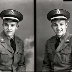 Photo of two separate portrait photographs of the same unidentified young man wearing a U.S. Army uniform.