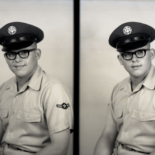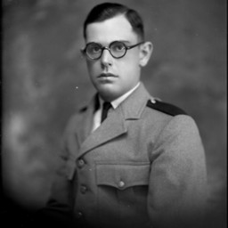 Photo of two separate portrait photographs of the same unidentified man with glasses and wearing a military uniform.
