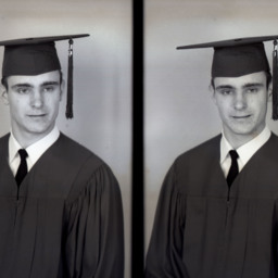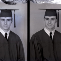 Photo of two separate portrait photographs of Gary Wakeman in his graduation cap and gown.