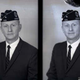 Portrait photograph of Stanley John Wakeman in his American Legion cap and wearing a suit and tie.