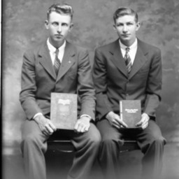 Photograph of Stanley Wakeman (left) and his younger brother, Ray A. Wakeman, seated together.