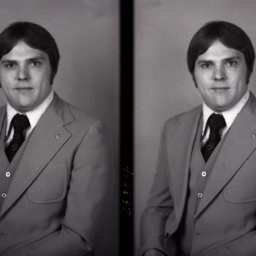 Photo of two separate portrait photographs of Bill Weavers as a young man in a suit and tie.
