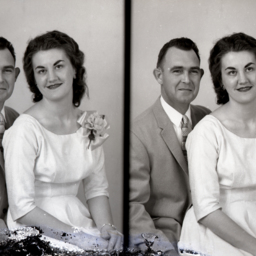 Photo of two separate portrait photographs of Shirley Franklin "Frank" Smallwood and his wife, Catherine Rebecca "Becky" Windle, posed together.