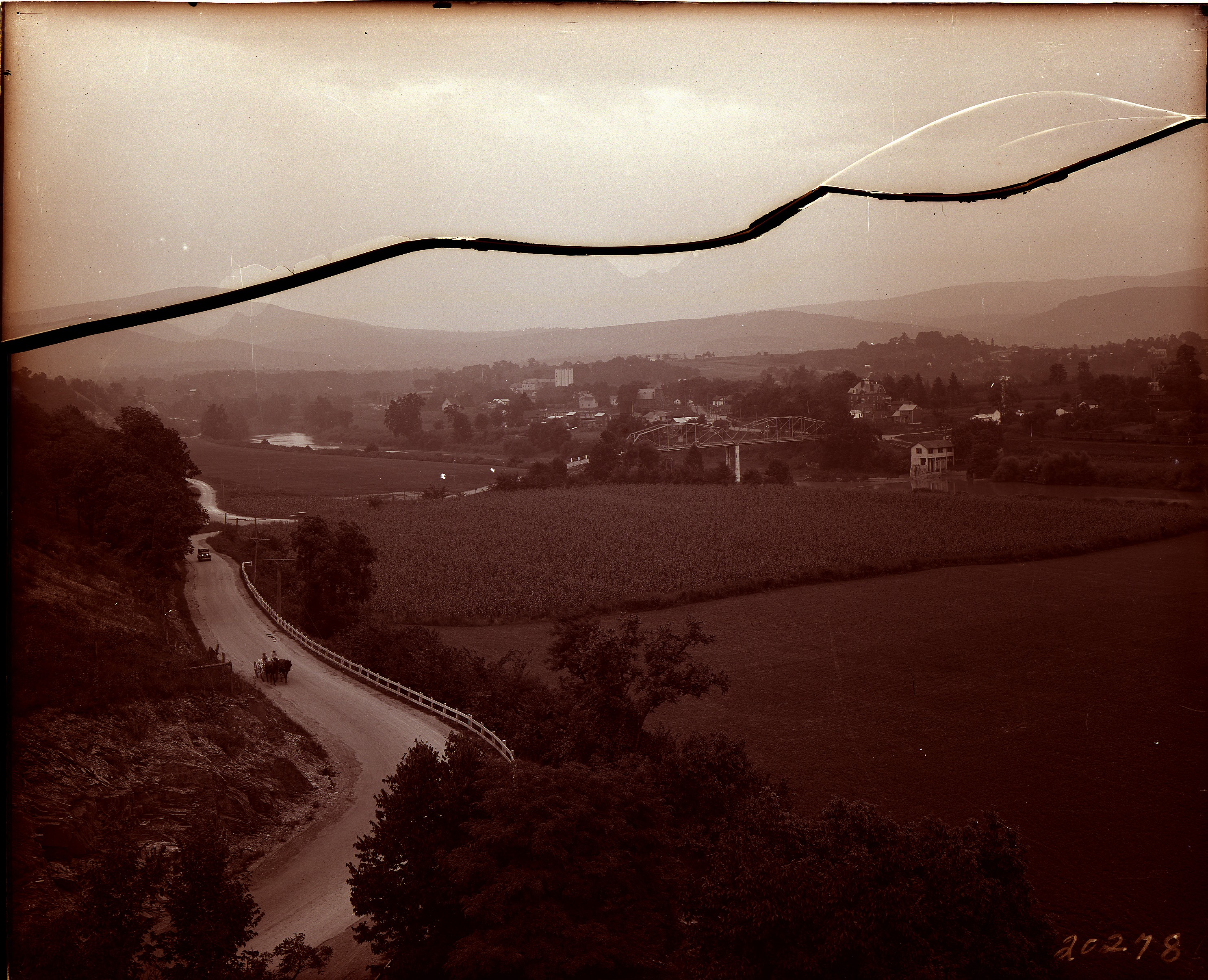 The photograph looks south. The road and bridge visible are part of the “Winchester Turnpike,” today Route 522.