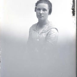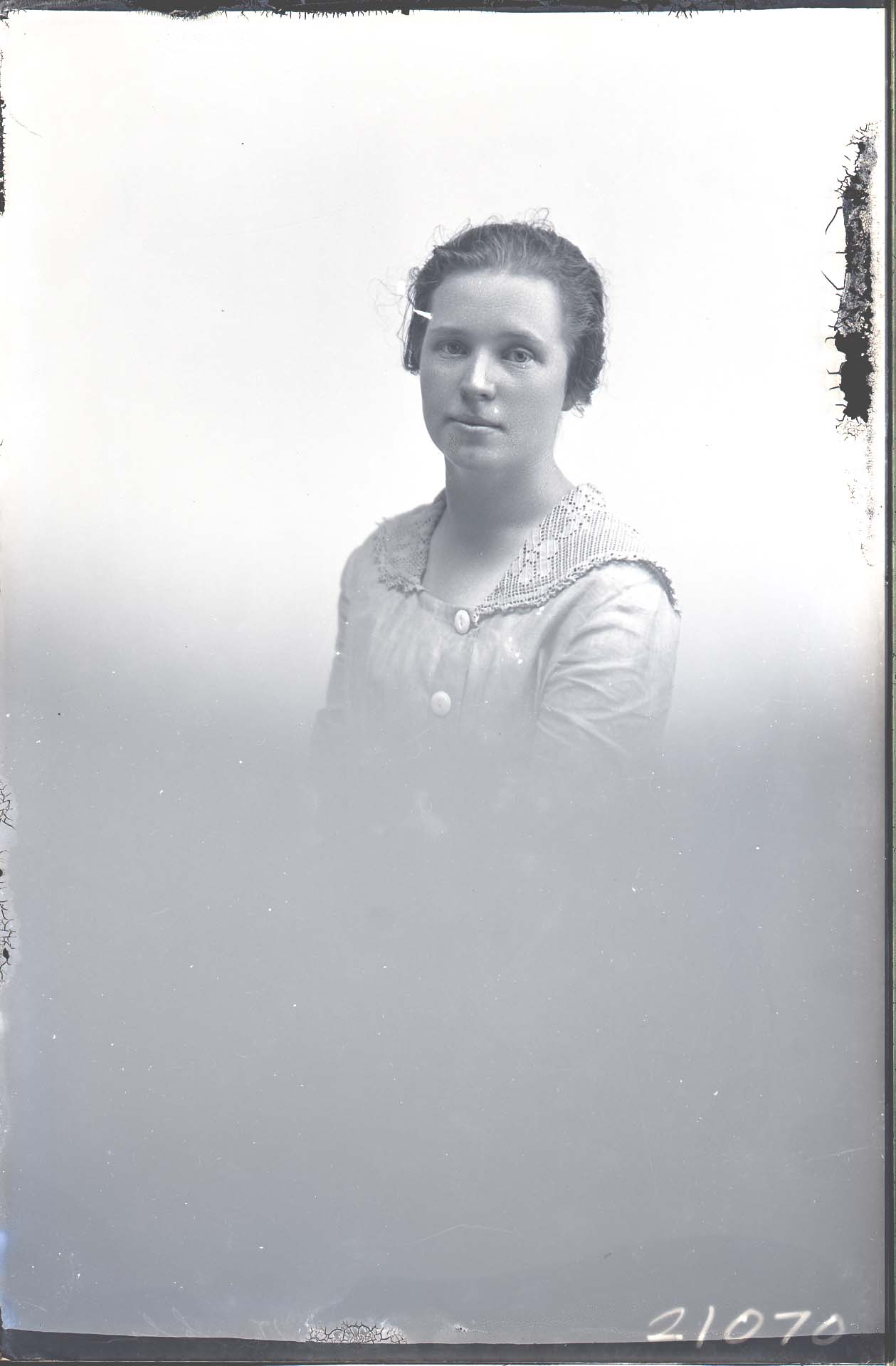 Portrait photograph of an unidentified woman with her hair pulled back from her face.