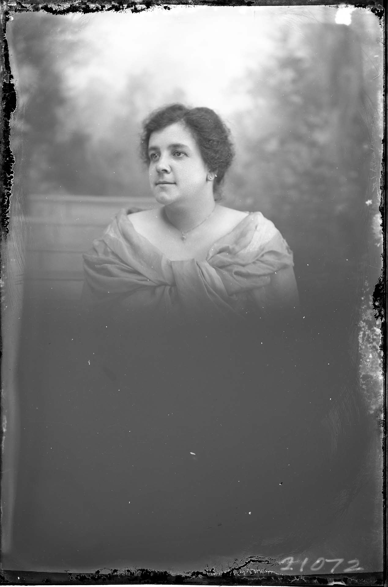 Portrait photograph of an unidentified woman wearing a necklace and a photographer's drape.