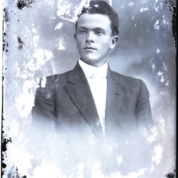 Portrait photograph of an unidentified young man wearing a suit and tie.
