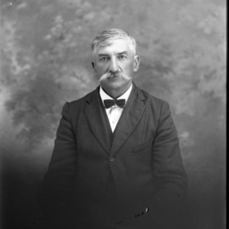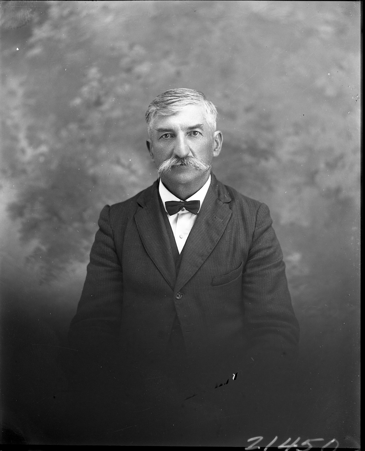 Portrait photograph of an unidentified man with a mustache and wearing a suit and bow tie.