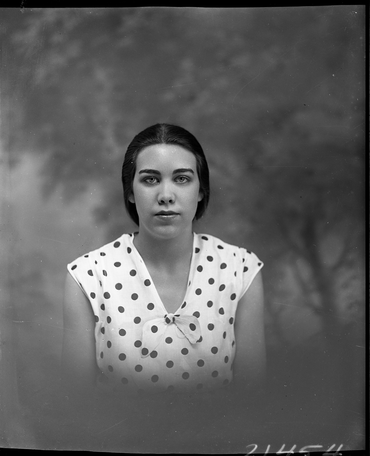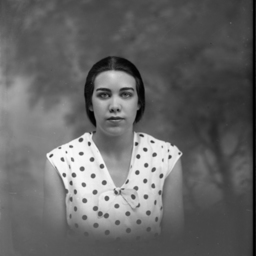 Portrait photograph of an unidentified woman wearing a polka-dotted dress.