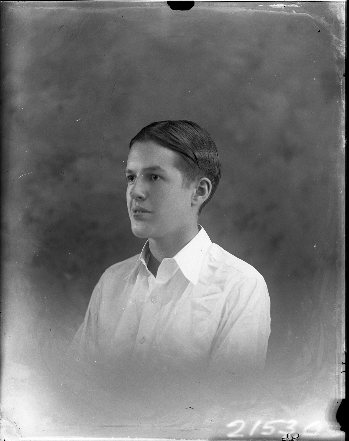 Portrait photograph of an unidentified young man wearing a collared shirt and looking to the side, almost in profile.