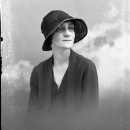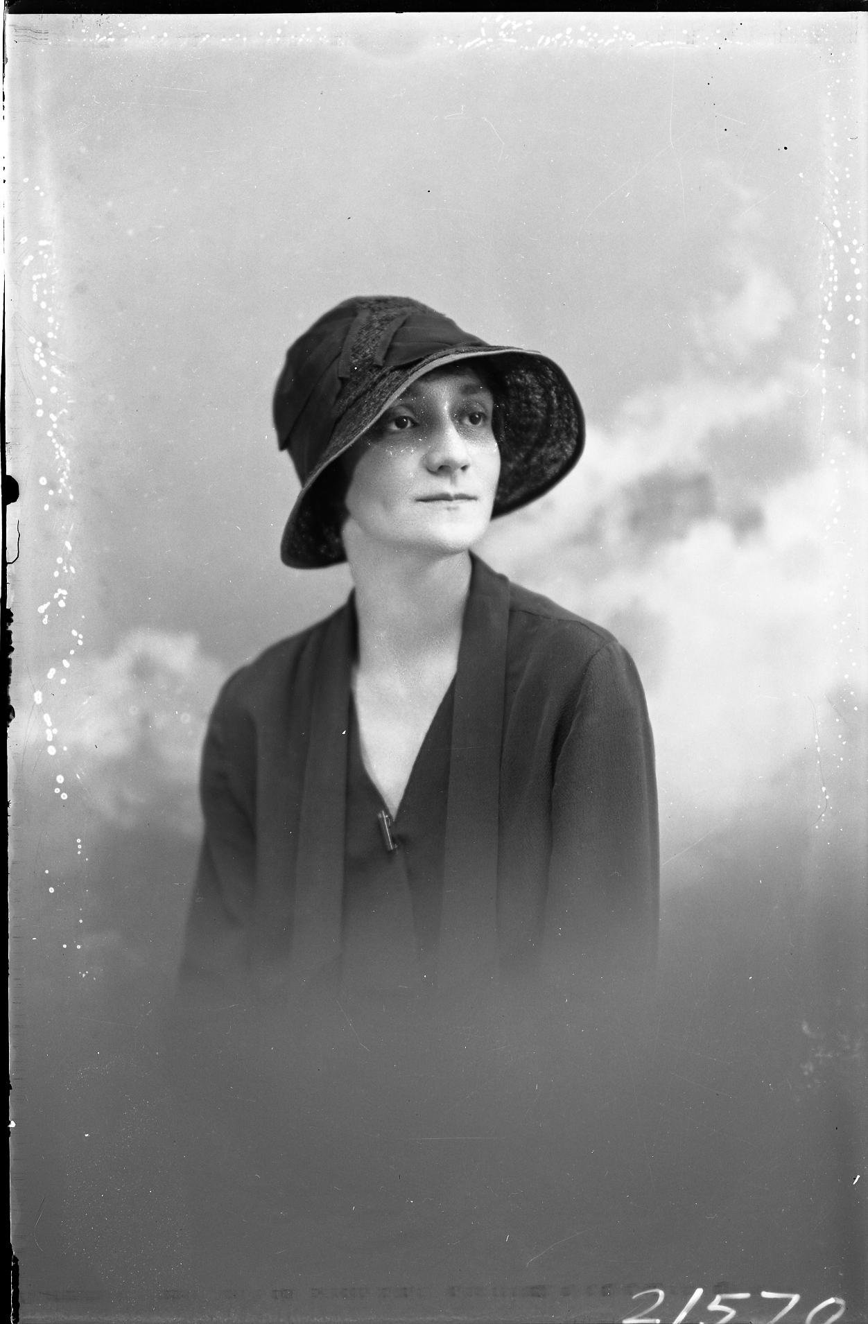 Portrait photograph of an unidentified woman wearing a hat and looking off to the side, almost in profile.