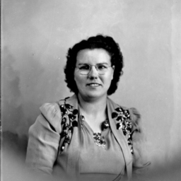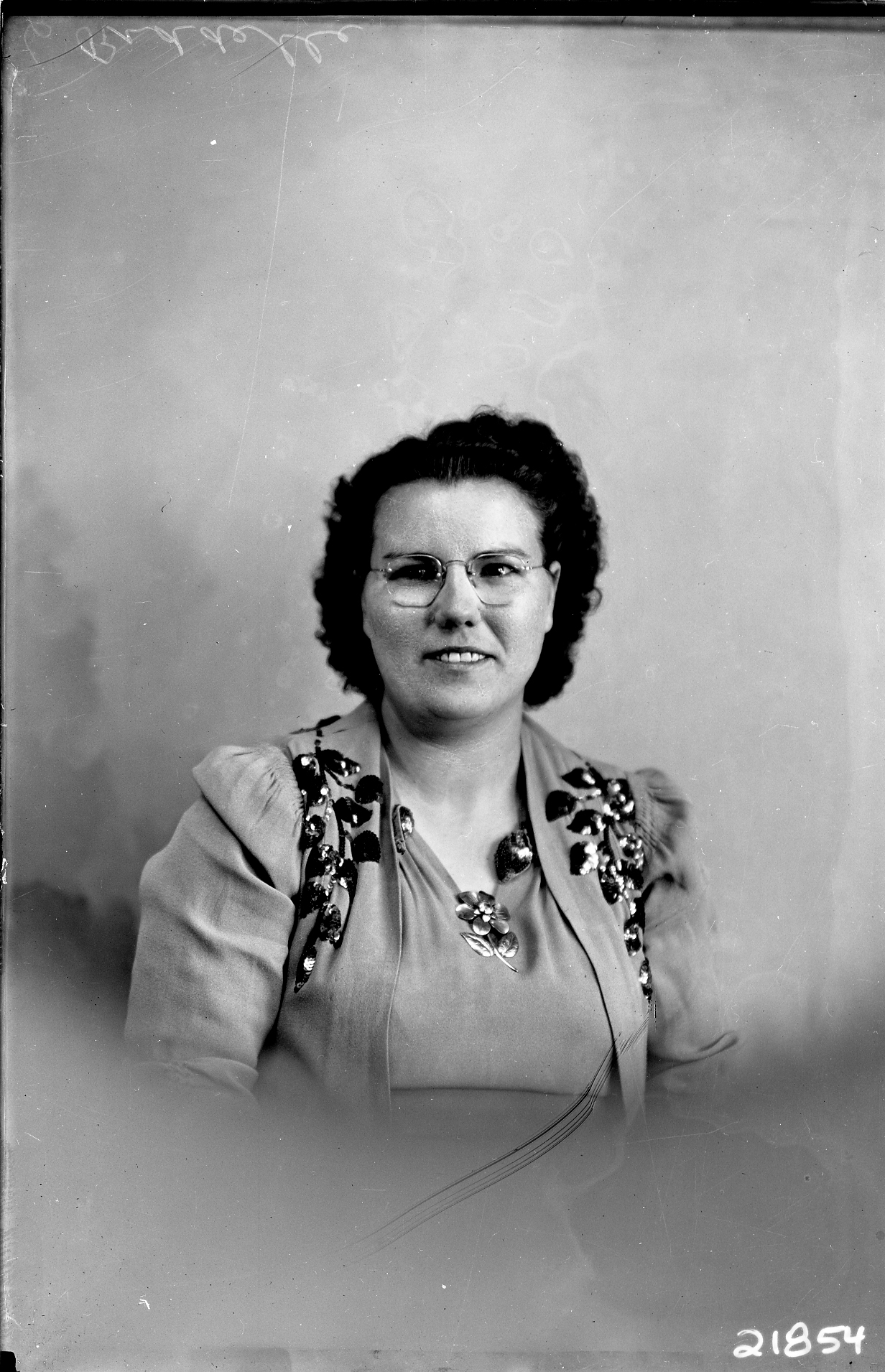 Portrait photograph of an unidentified woman with short hair and glasses.