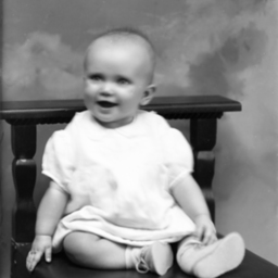 Unidentified baby seated on a chair.