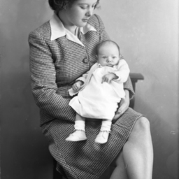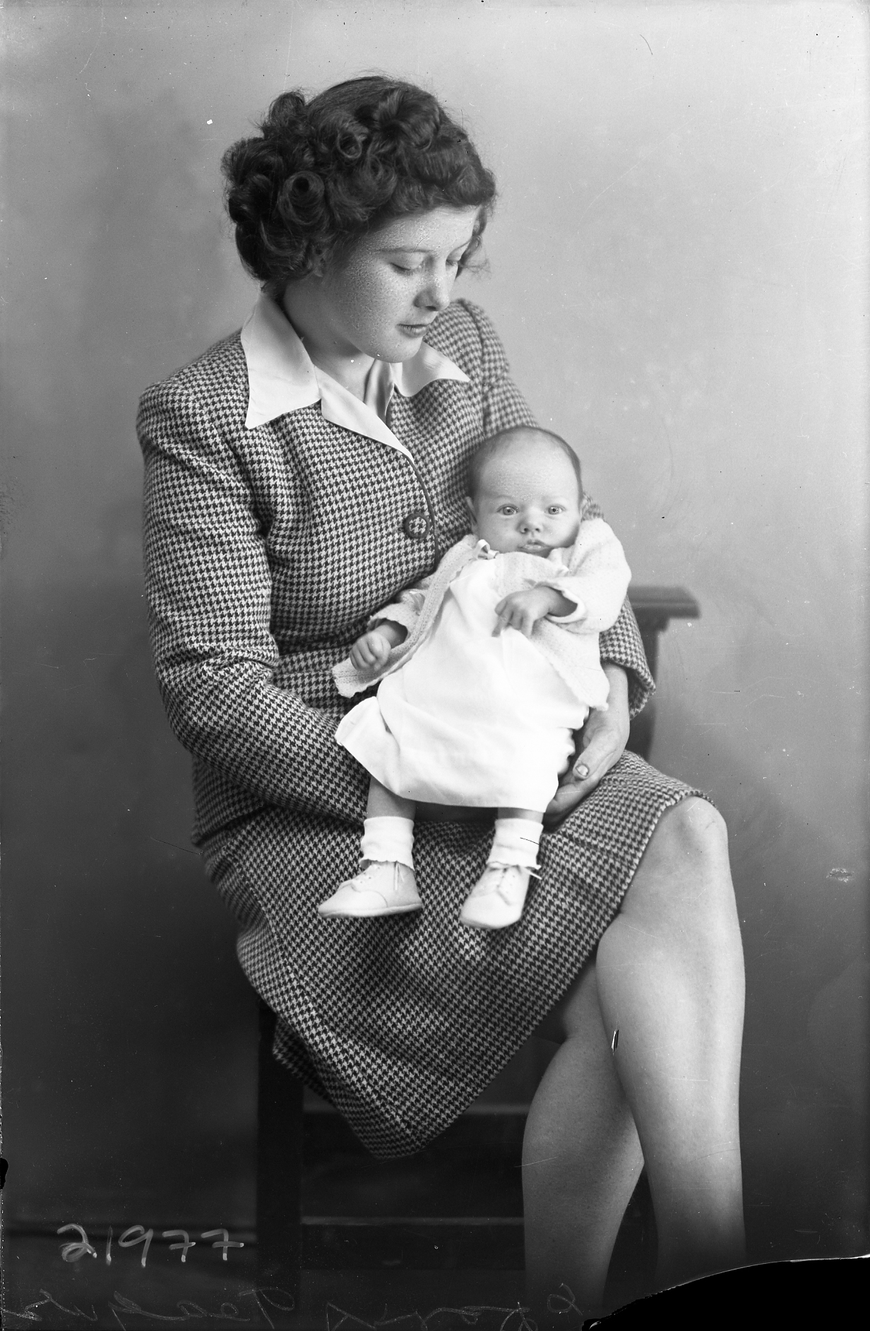 Unidentified woman in a checkered outfit is seated and holding an unidentified infant in her arms.