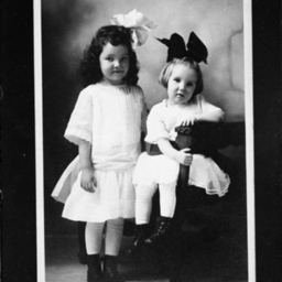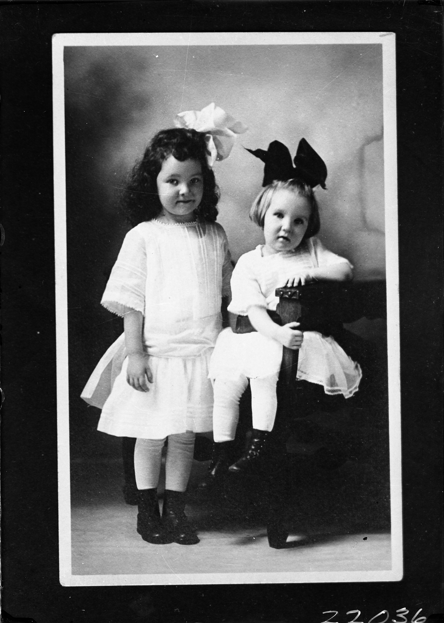 Photo of a photograph of two unidentified young girls, both with bows in their hair.