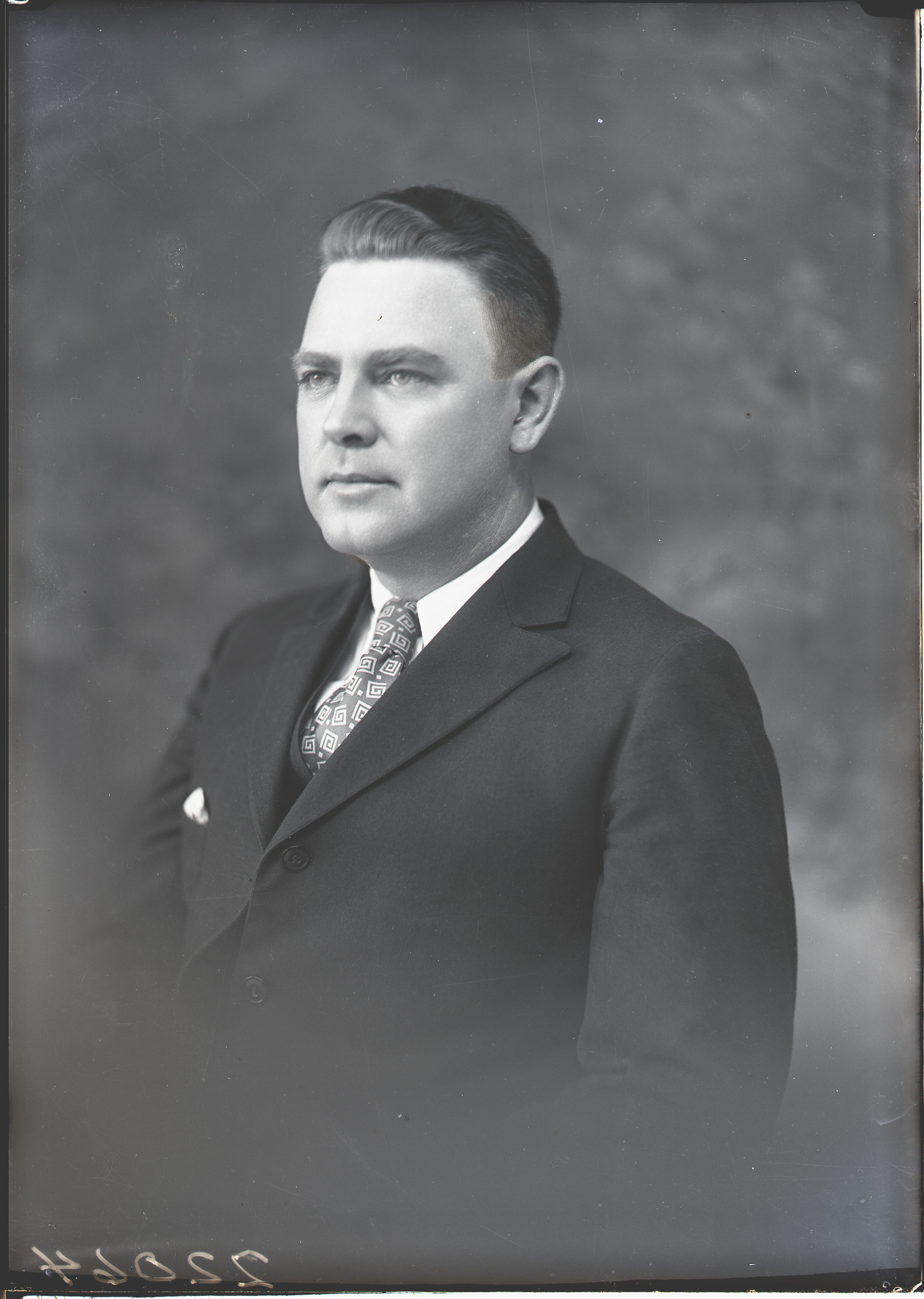 Portrait photograph of an unidentified man wearing a suit and tie.