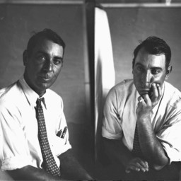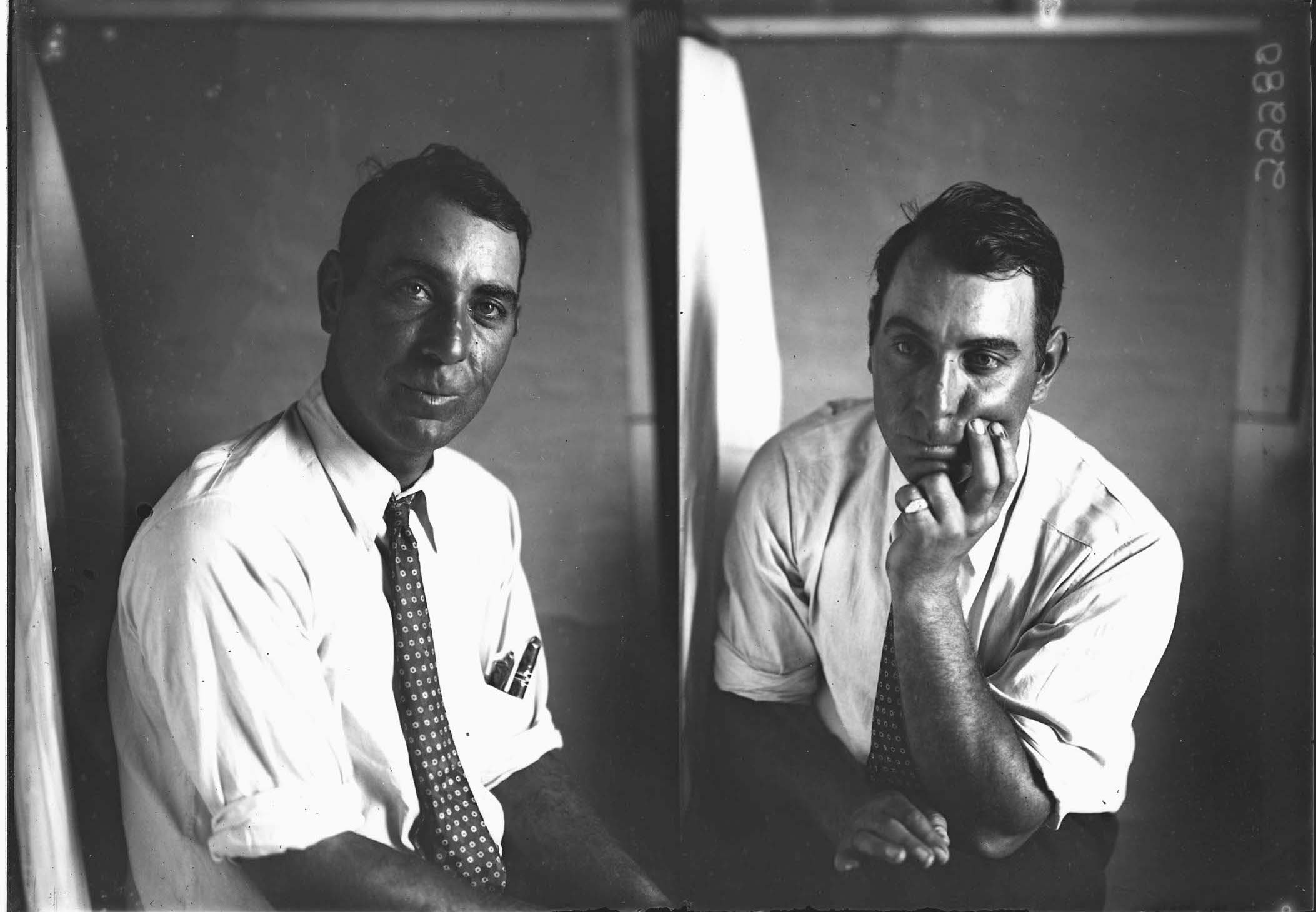 Photo of two separate portrait photographs of the same unidentified man. He is wearing a shirt with rolled sleeves and a tie.