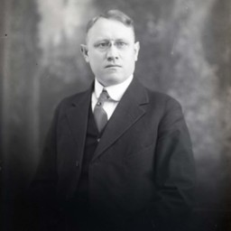 Portrait photograph of an unidentified man in pince-nez glasses and wearing a suit and tie with a starched collar.