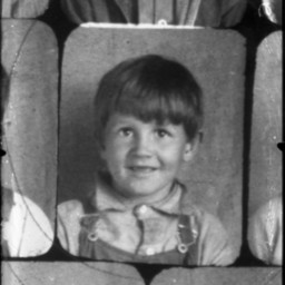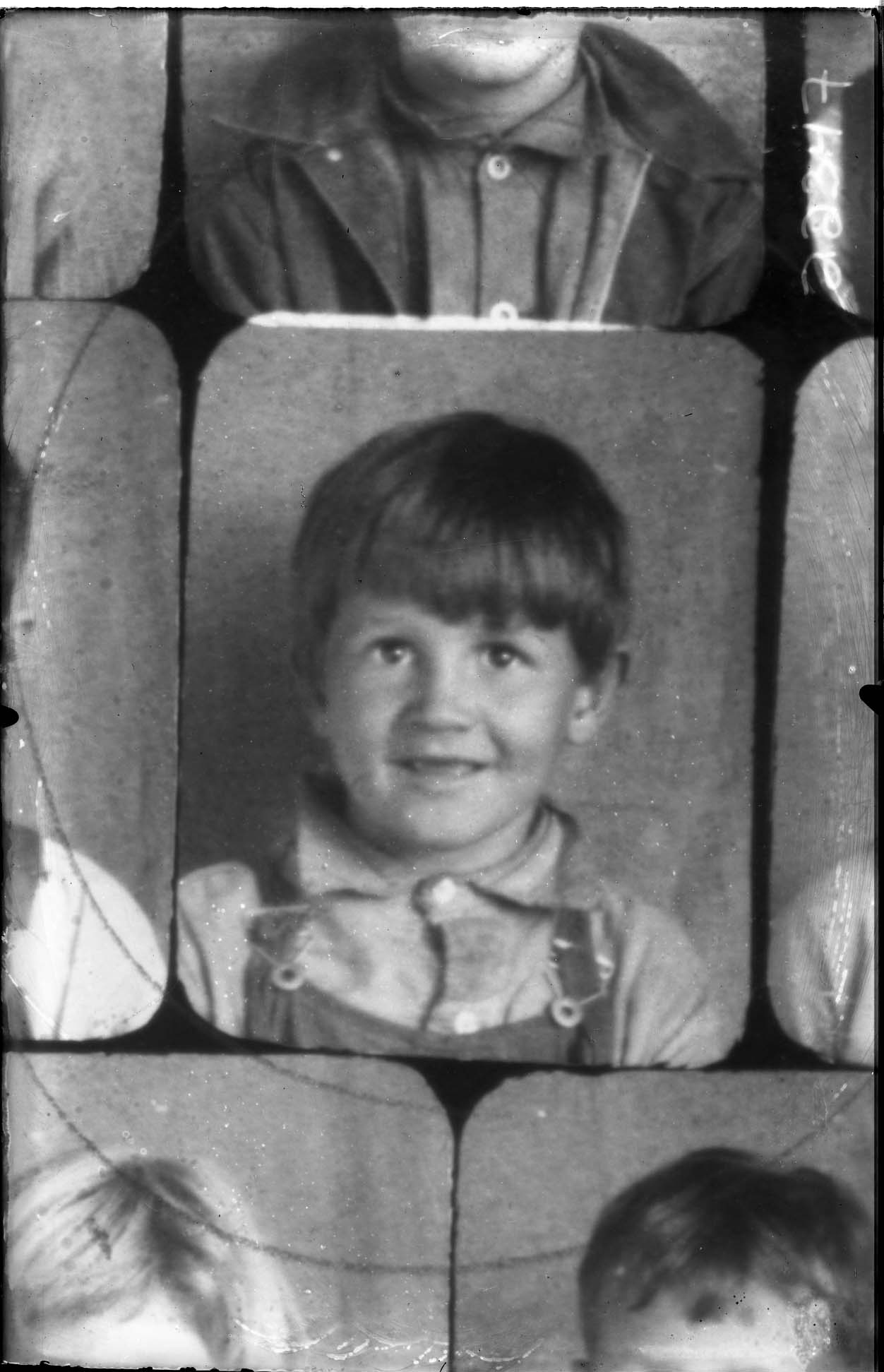 His photo has been cropped from an original image that included many other children's faces, probably a school photograph.
