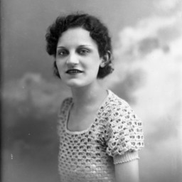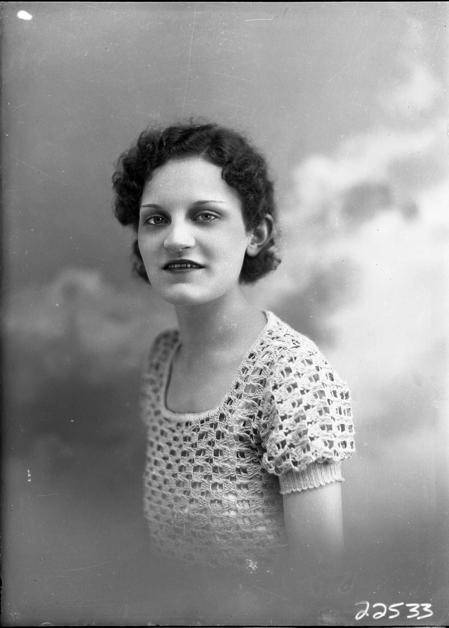 Portrait photograph of an unidentified woman with short hair and wearing a short-sleeved top.
