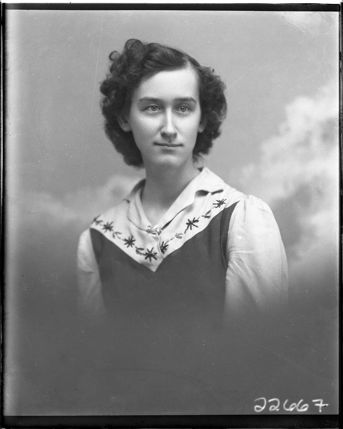 Portrait photograph of an unidentified young woman with short curly hair.