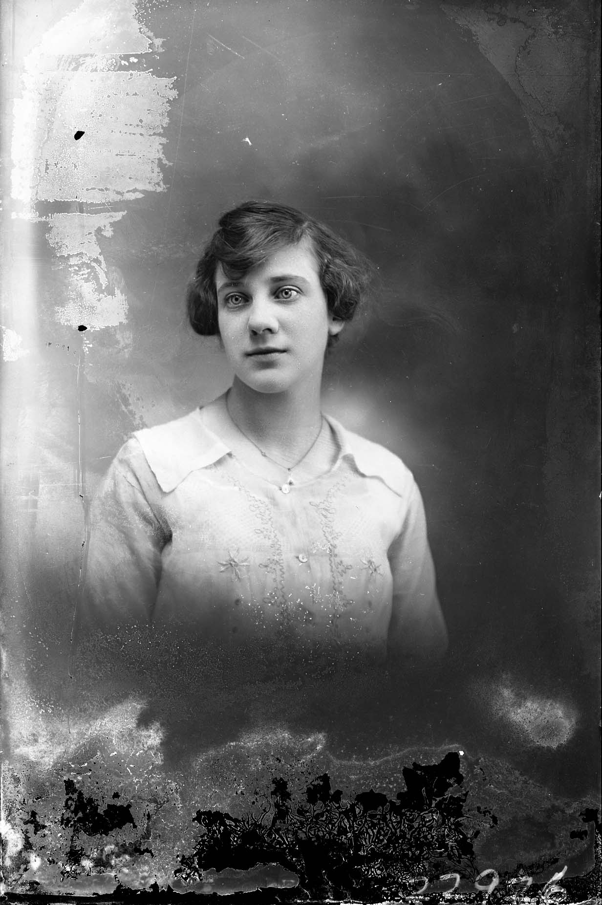 Portrait photograph of an unidentified young woman with short hair and wearing a necklace.