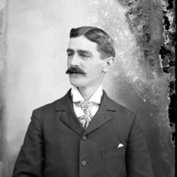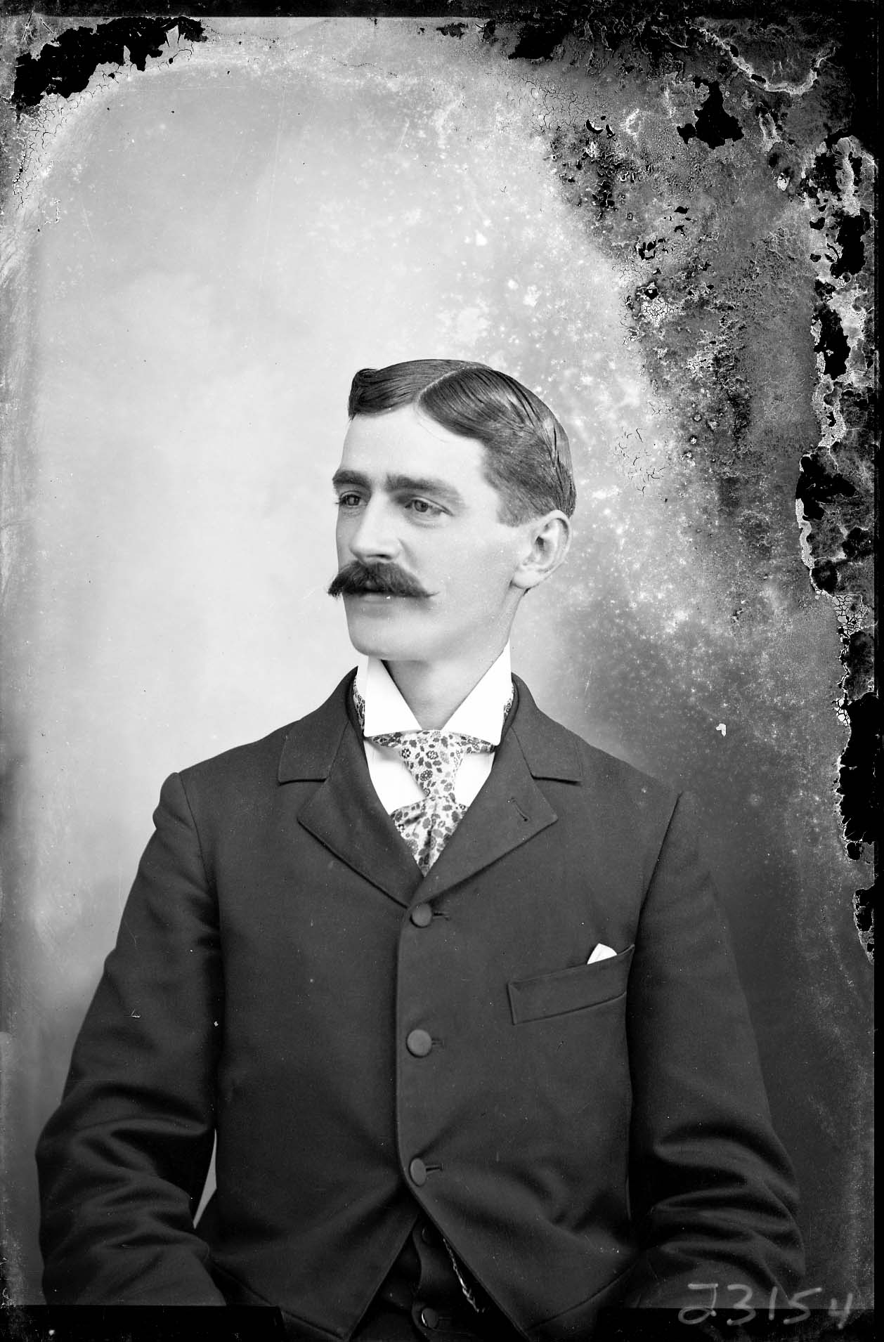 Portrait photograph of an unidentified man with a mustache and wearing a suit and tie.