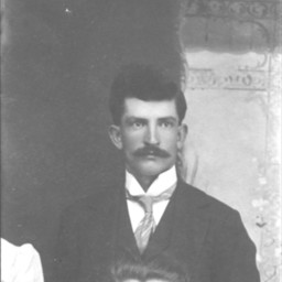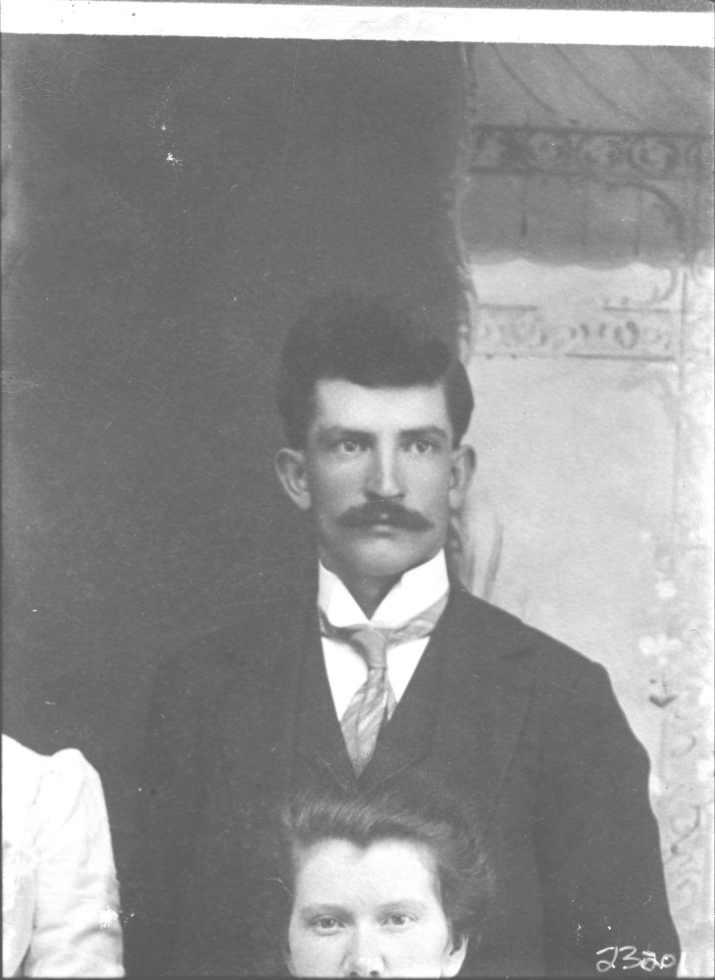 Cropped copy of a photograph of an unidentified man with a mustache and wearing a suit and tie with a starched collar.